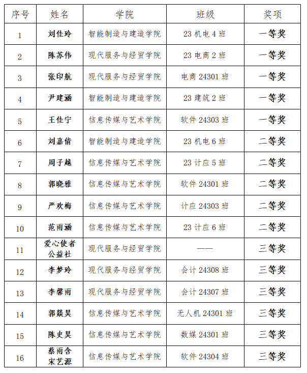 此次评选过程严格遵循公平、公正、公开的原则,评委们依据实践成果、个人感悟、现场表现等多个方面进行综合评定。经过激烈的角逐,最终评选出一等奖 5 名、二等奖 5 名、三等奖 6 名。具体获奖名单如下: