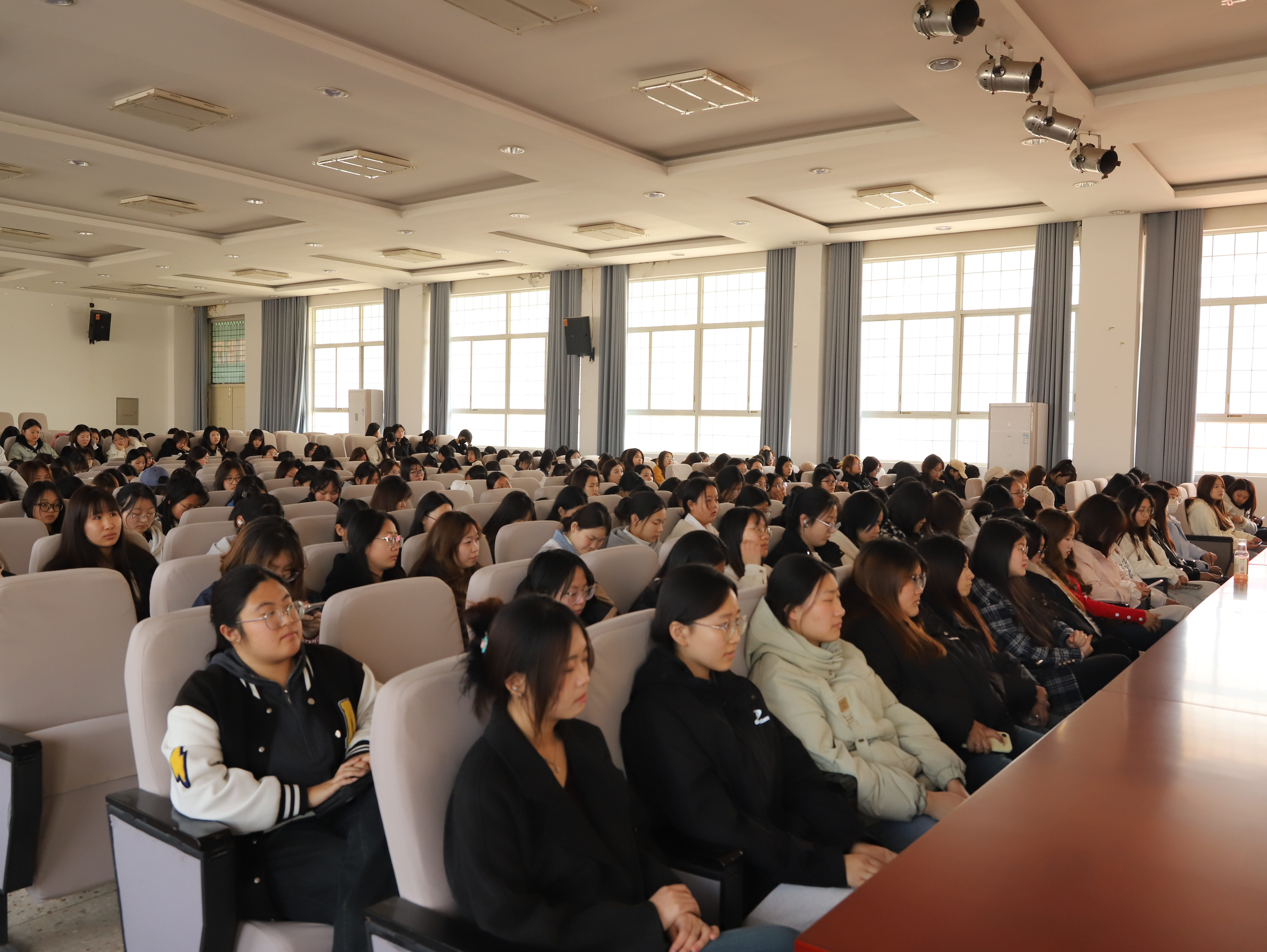 四月,阳光正好,温柔地铺满校园的每一个角落。4月15日下午4时,学校会议中心内满是青春的朝气,一场意义非凡的讲座 ——“关注祖国未来 呵护女性健康”女性健康教育知识专题讲座在此温情开讲,300名女生齐聚一堂,共同聆听这场关乎青春、健康与自我成长的智慧之音。