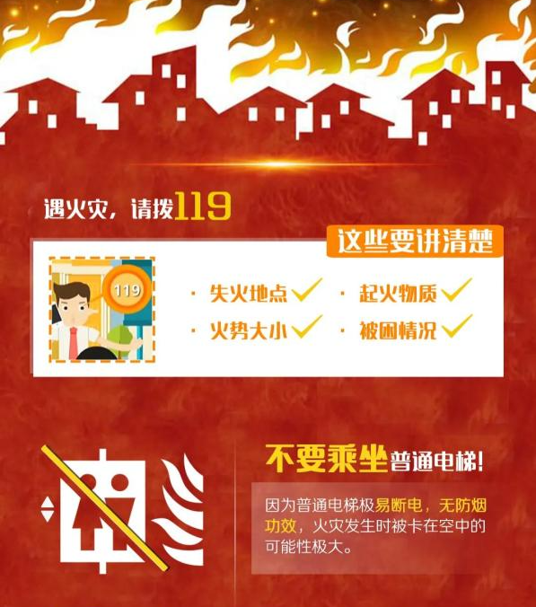 火势汹汹,消防知识不能忘;水火猛于虎,安全重千钧。消防工作是一项长期、艰巨的工作,绝非一朝一夕之功,仅仅依靠“119”消防日是难以实现工作目标和任务的,只有我们每个人在日常工作、生活中提高防范意识,严格落实各项消防工作任务,珍爱生命,远离火灾!