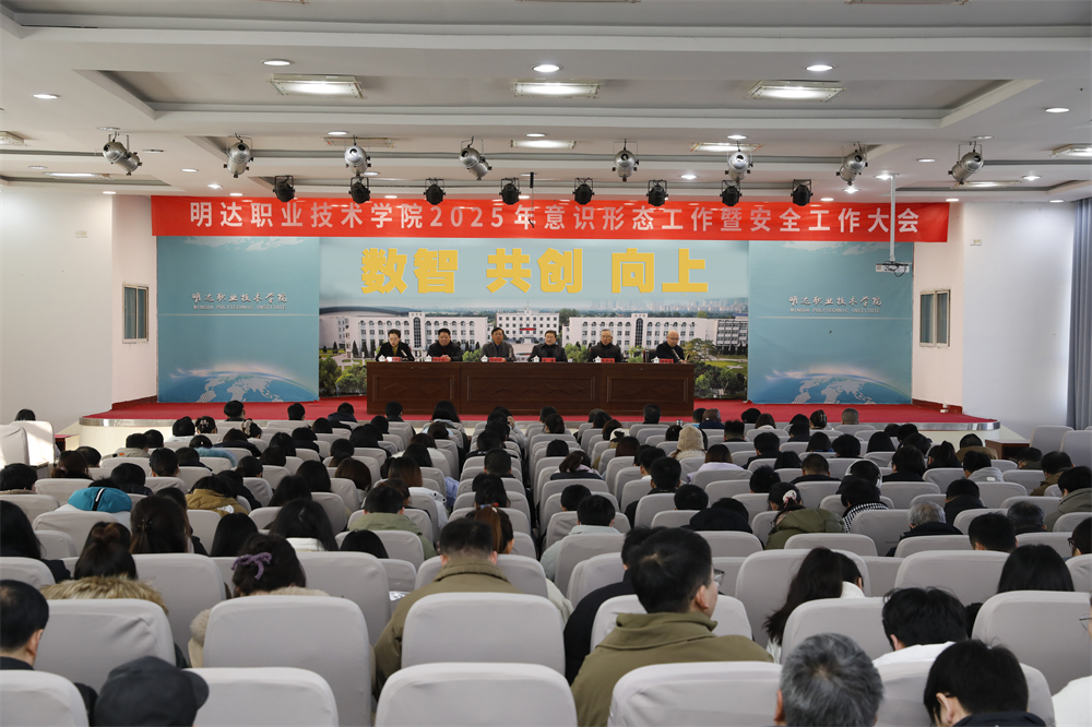 1月2日,我校在学术报告厅召开意识形态工作暨安全工作会议,全体教职员工齐聚一堂。执行董事张建、校长马宏伟、党委书记刘必千、校长助理兼教务处处长徐宏桂在主席台就坐,副校长周凯猛主持会议,会议旨在统一思想、明确责任,为学校高质量发展筑牢根基。