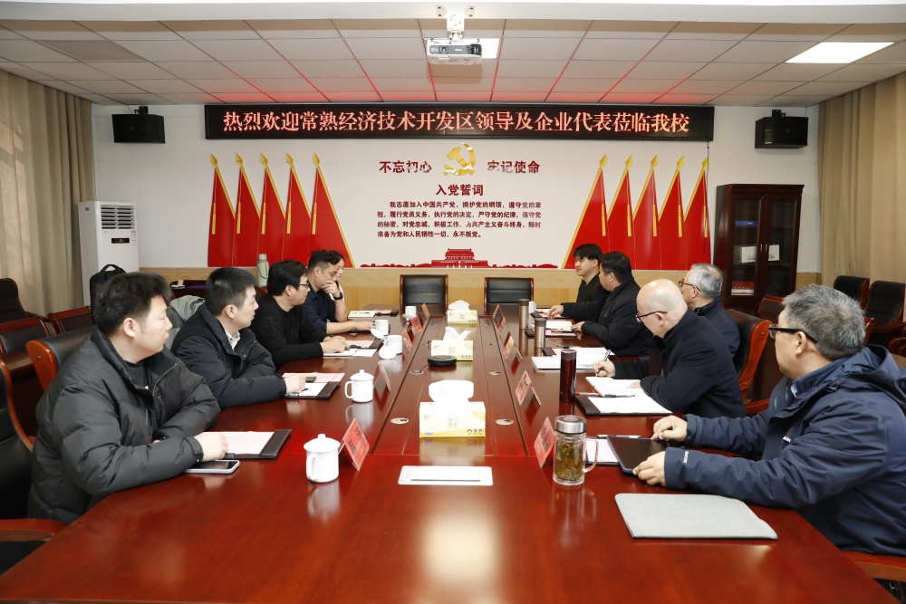 3月6日下午,我校与常熟经济技术开发区校企合作洽谈会在行政楼二楼会议室召开。会议旨在深化校企合作,推动产教融合,为区域经济发展培养高素质技术技能人才。常熟经济技术开发区石丽君科长一行五人、校长马宏伟、副校长周凯猛、智能制造与建造学院院长李曹林、继续教育学院副院长李法浩出席会议,校长助理徐宏桂主持会议。